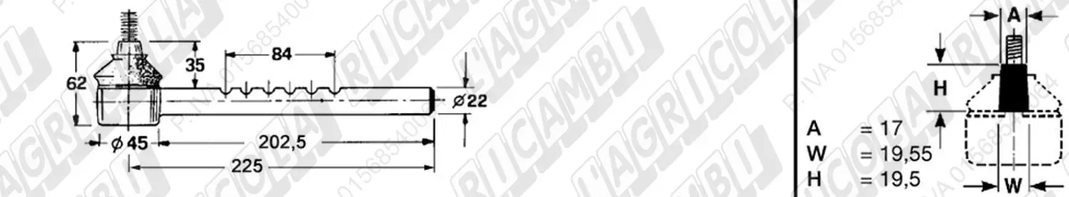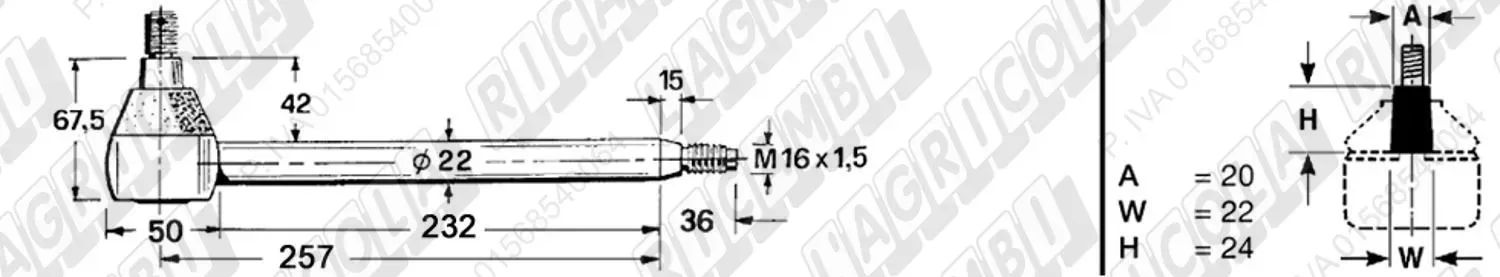Tirante Idrog. Centr. FEMM. - Cono 23,40 - Fil. ø22x1,5 Dx - L=225 (dettagli)