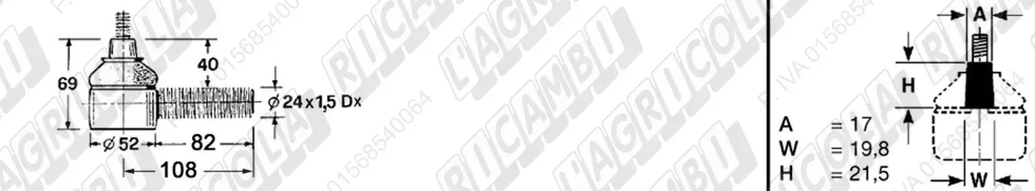 Tirante Idrog. Centr. FEMM. - Cono 27,00 - Fil. ø24x1,5 Dx - L=195 (dettagli)