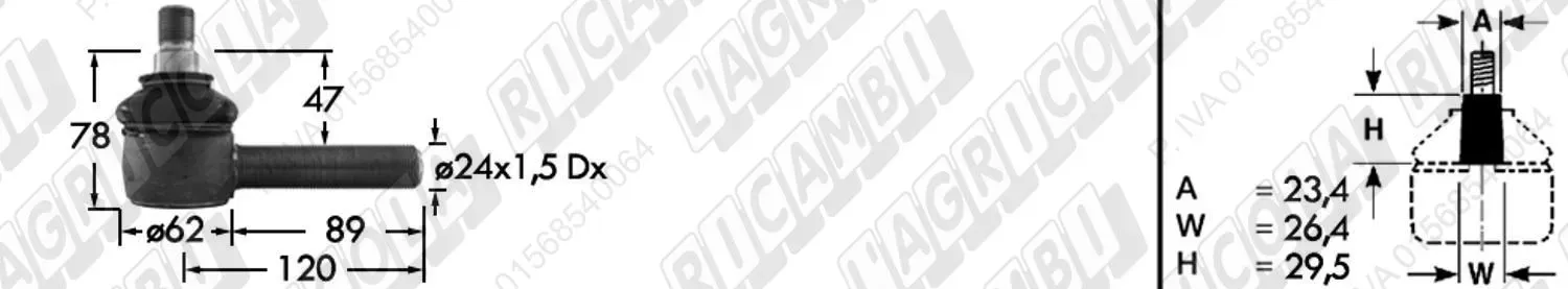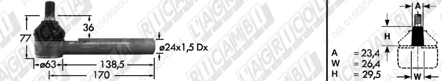 Tirante Idrog. Centr. FEMM. - Cono 23,40 - Fil. ø24x1,5 Dx - L=170 (dettagli)