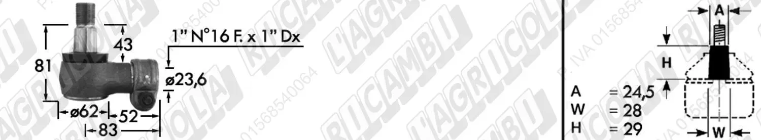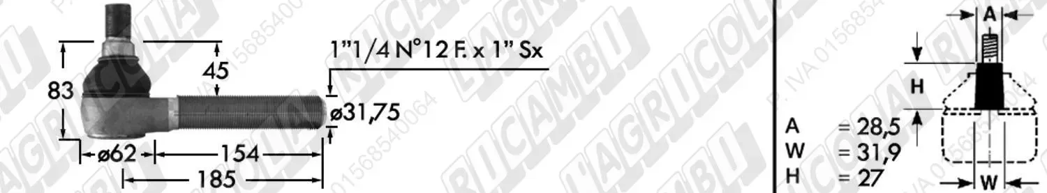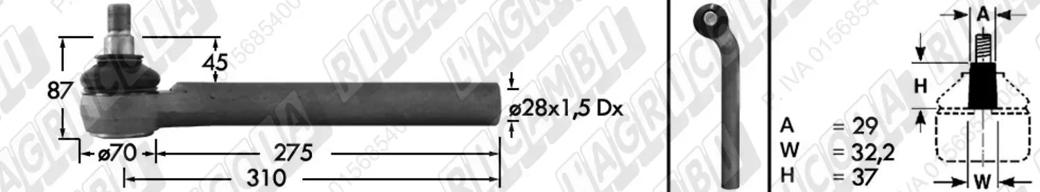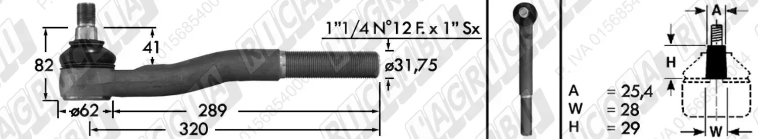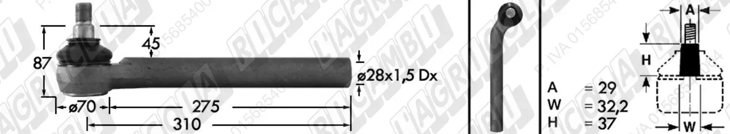 Tirante Idrog. Centr. FEMM. - Cono 29,00 - Fil. ø28x1,5 Dx - L=310 - Sx Piega (dettagli)