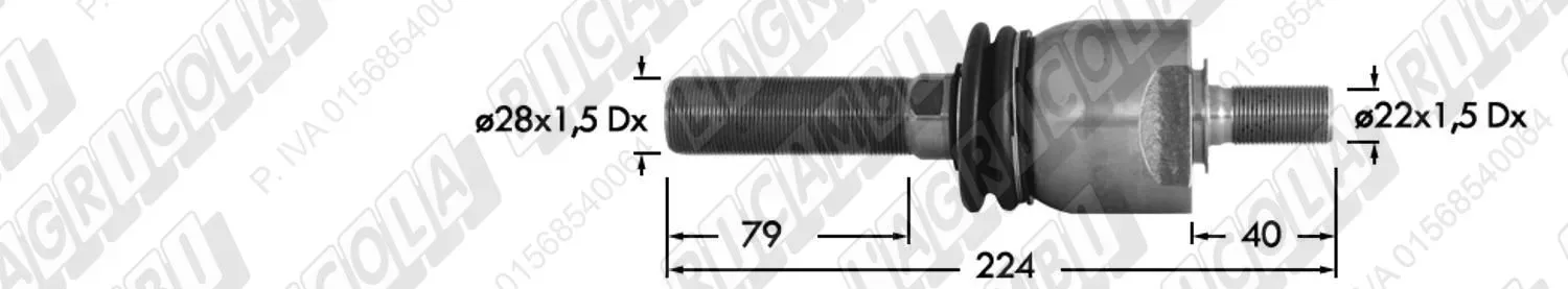 Tirante Idrog. Centr. FEMM. - Cono 28,90 - Fil. ø28x1,5 Dx - L=225 (dettagli)