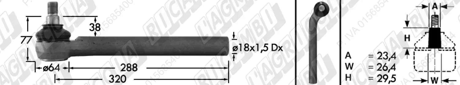 Tirante Idrog. Centr. FEMM. - Cono 23,40 - Fil. ø18x1,5 Dx - L=320 - Sx Piega (dettagli)