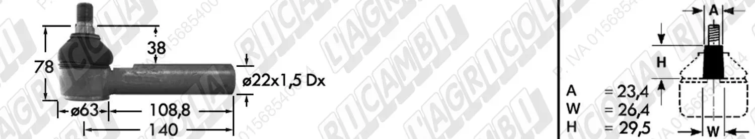 Tirante Idrog. Centr. FEMM. - Cono 23,40 - Fil. ø22x1,5 Dx - L=140 (dettagli)