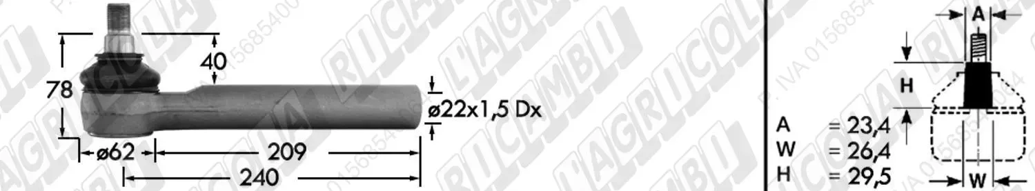 Tirante Idrog. Centr. FEMM. - Cono 23,40 - Fil. ø22x1,5 Dx - L=240 (dettagli)