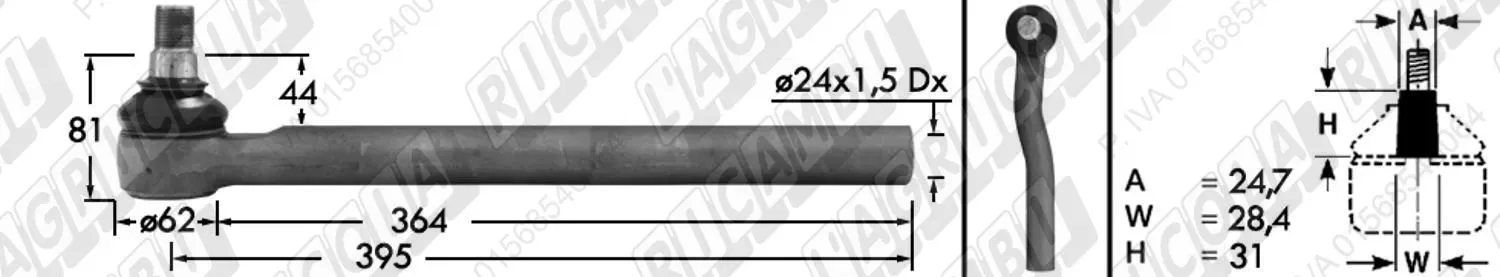 Tirante Idrog. Centr. FEMM. - Cono 24,70 - Fil. ø24x1,5 Dx - L=395 - Sx Piega (dettagli)