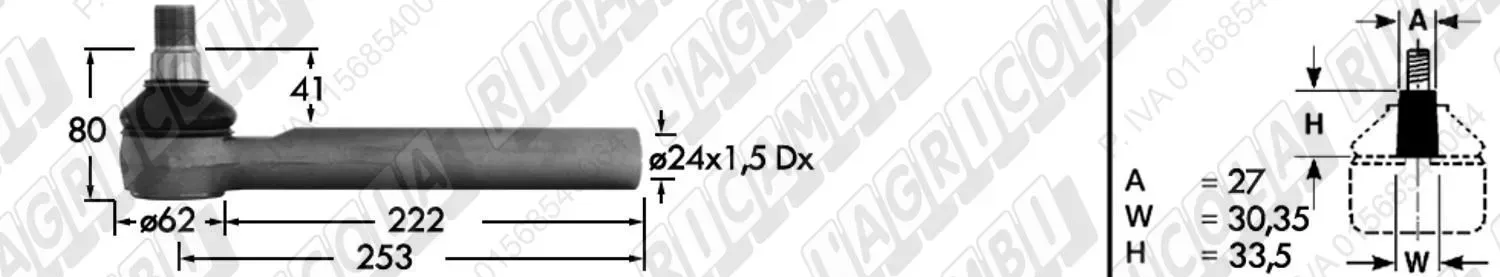 Tirante Idrog. Centr. FEMM. - Cono 27,00 - Fil. ø24x1,5 Dx - L=253 (dettagli)