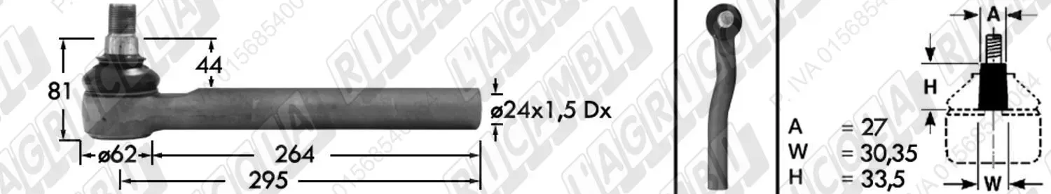Tirante Idrog. Centr. FEMM. - Cono 27,00 - Fil. ø24x1,5 Dx - L=295 - Dx Piega (dettagli)
