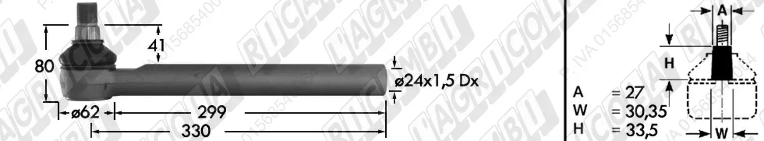 Tirante Idrog. Centr. FEMM. - Cono 27,00 - Fil. ø24x1,5 Dx - L=330 (dettagli)