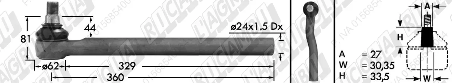 Tirante Idrog. Centr. FEMM. - Cono 27,00 - Fil. ø24x1,5 Dx - L=360 - Sx Piega (dettagli)