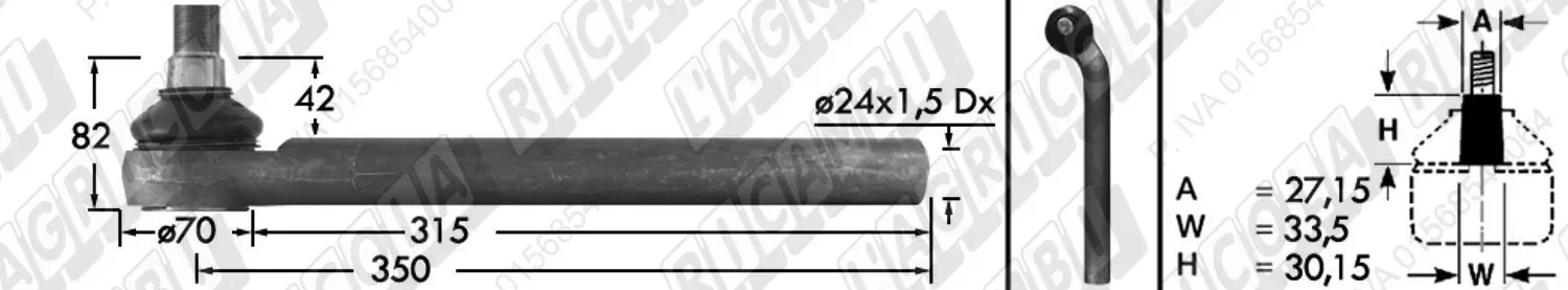 Tirante Idrog. Centr. FEMM. - Cono 27,15 - Fil. ø24x1,5 Dx - L=350 - Sx Piega (dettagli)