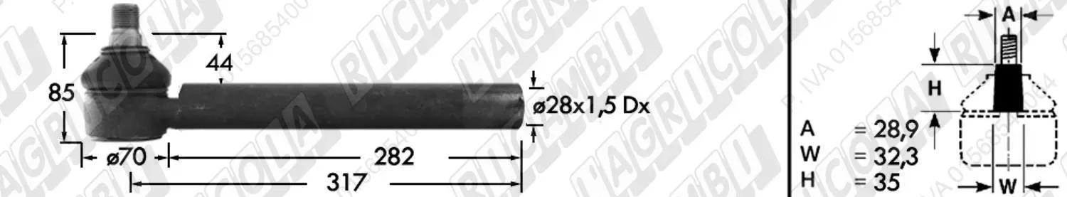Tirante Idrog. Centr. FEMM. - Cono 28,90 - Fil. ø28x1,5 Dx - L=317 (dettagli)