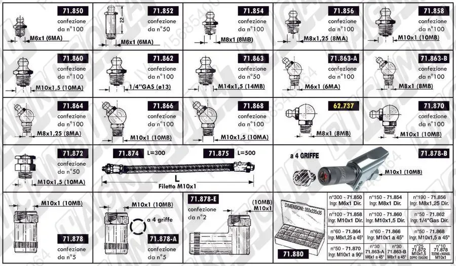 INGRASSATORE M10x1 DIRITTO (Confezione n°100 ingrassatori) (dettagli) Imp. su Gallignani 00.53.014