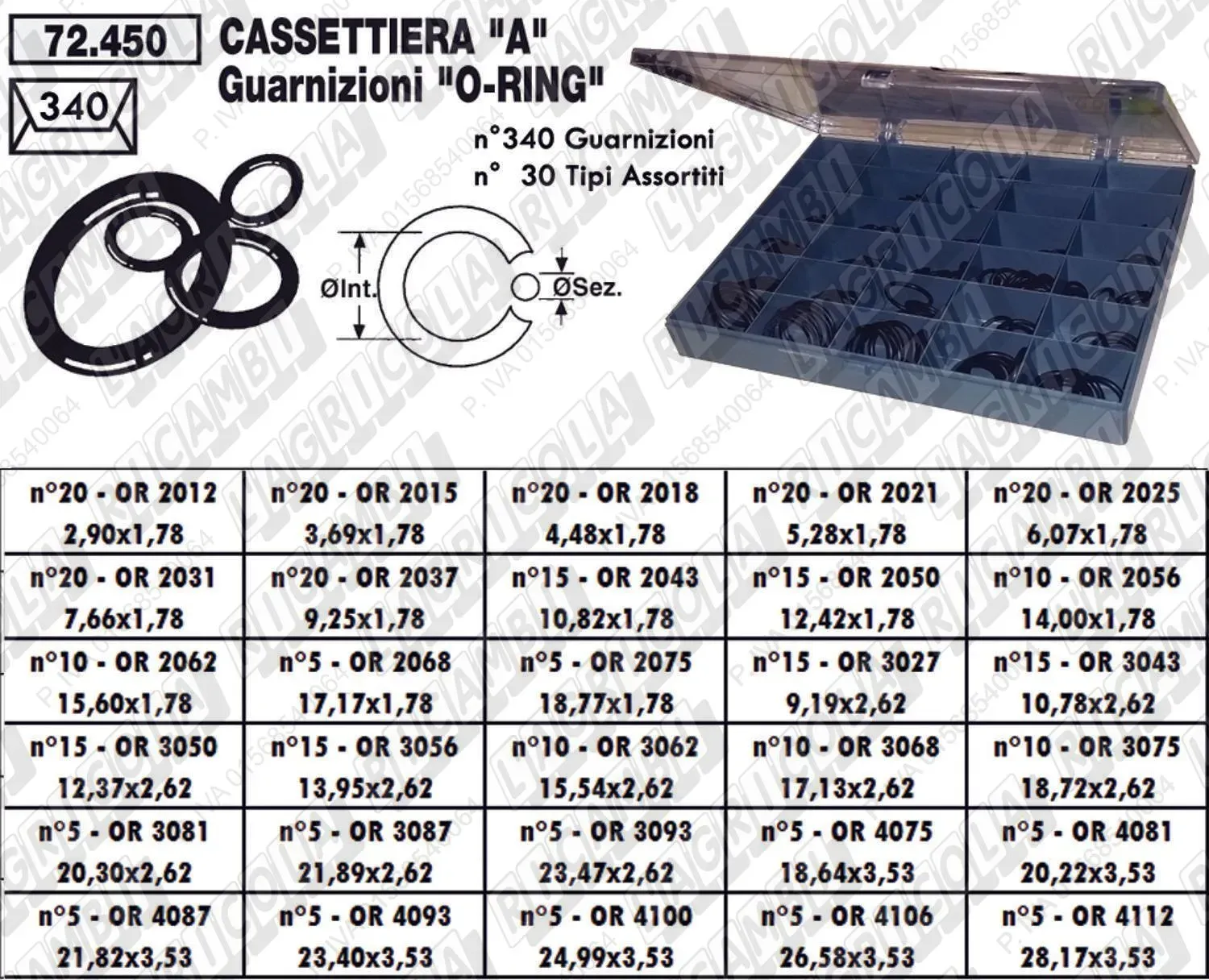 | CF | 1 | 72.450 | GUARNIZIONI O-RING Cassettiera 'Tipo A'' 340 Pezzi in 30 Tipi Assortiti -OR. 2012 -4112 (dettagli) |