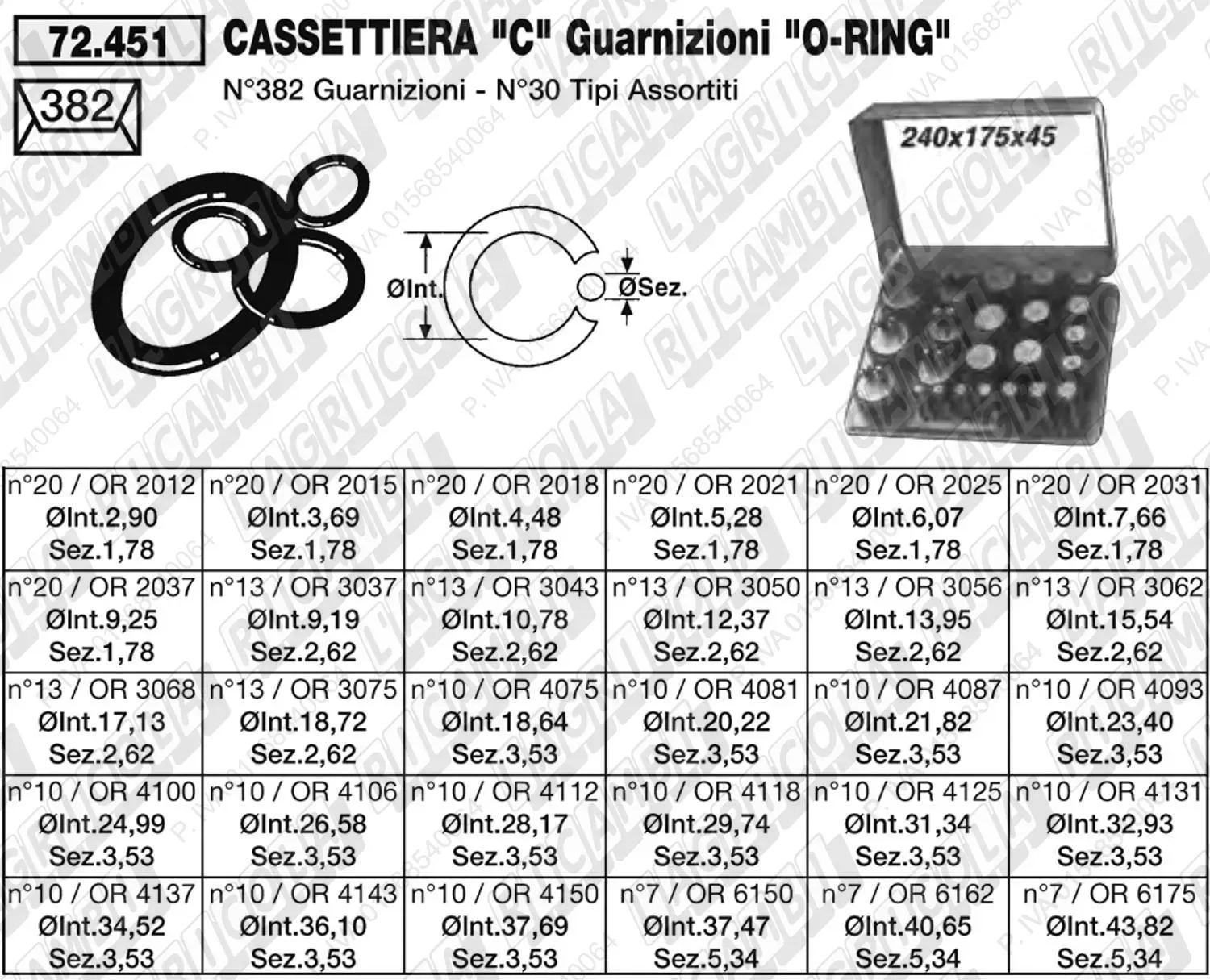 | CF | 1 | 72.451 | GUARNIZIONI O-RING Cassettiera 'Tipo C'' 382 Pezzi in 30 Tipi Assortiti -OR. 2012 -6175 (dettagli) |