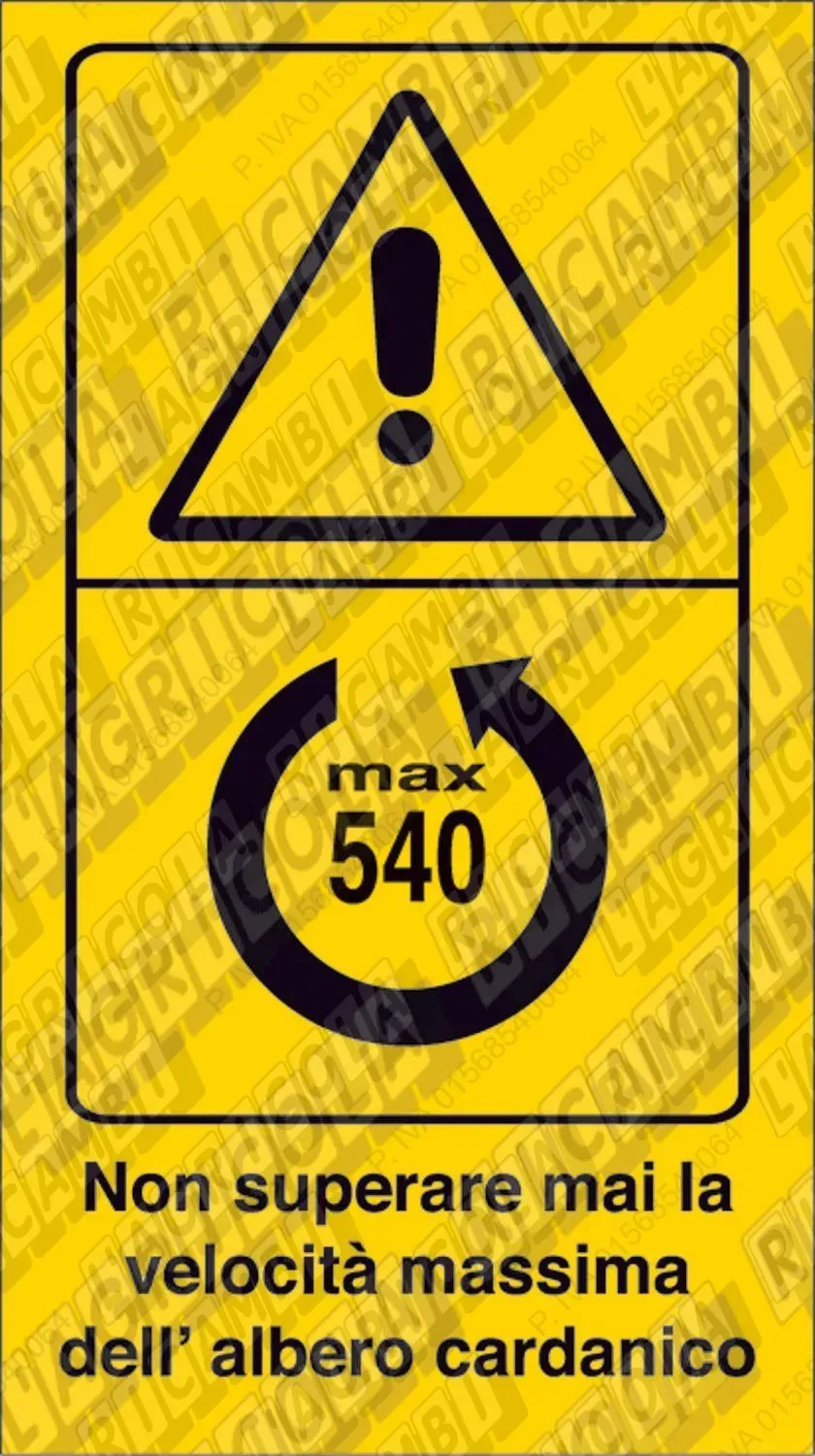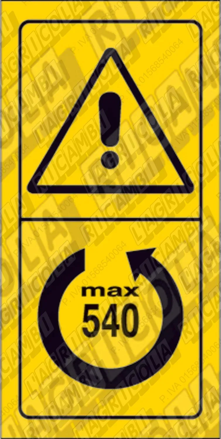 PITTOGRAMMA Segnale di Pericolo - Dimensioni (35x70) Verticale 'Verificare il numero dei giri ed il senso di rotazione della PTO' (dettagli)