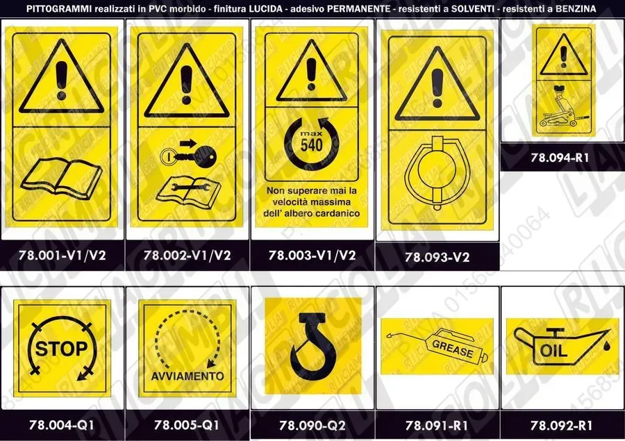 PITTOGRAMMA Segnale di Pericolo - Dimensioni (70x125) Verticale 'Verificare il numero dei giri ed il senso di rotazione della PTO' (dettagli)