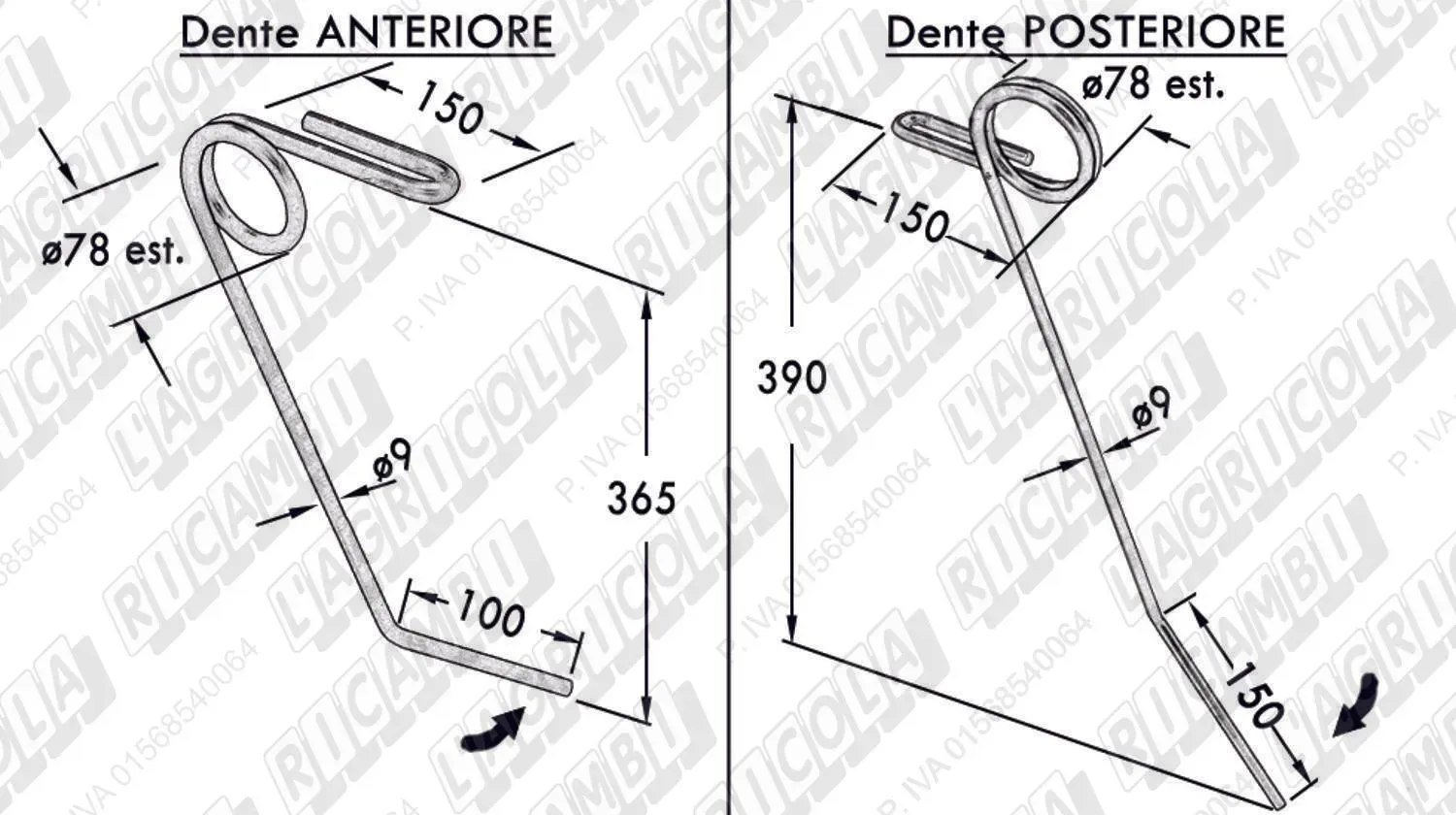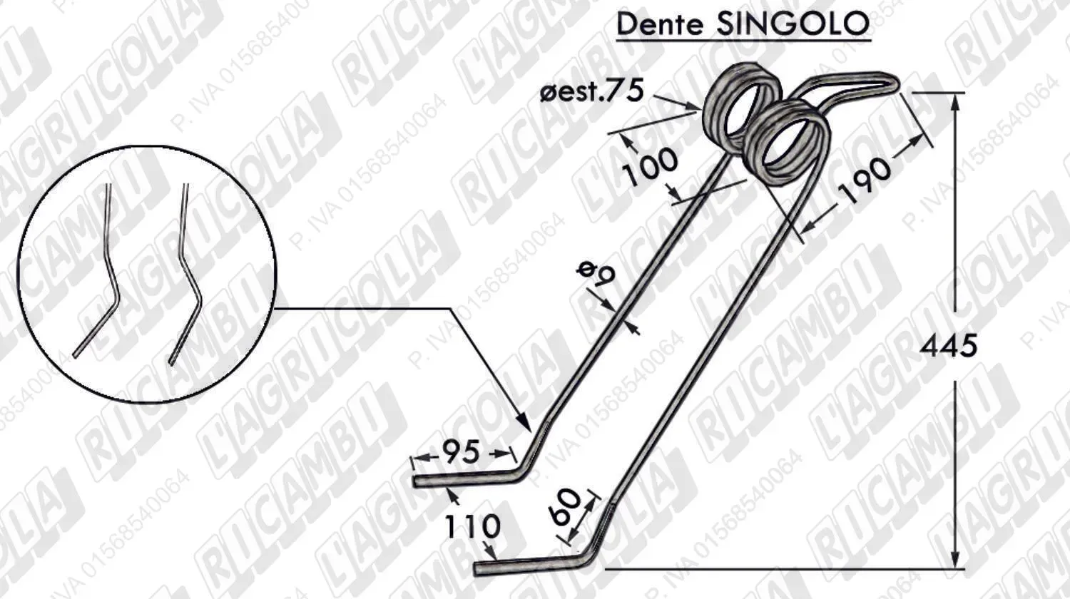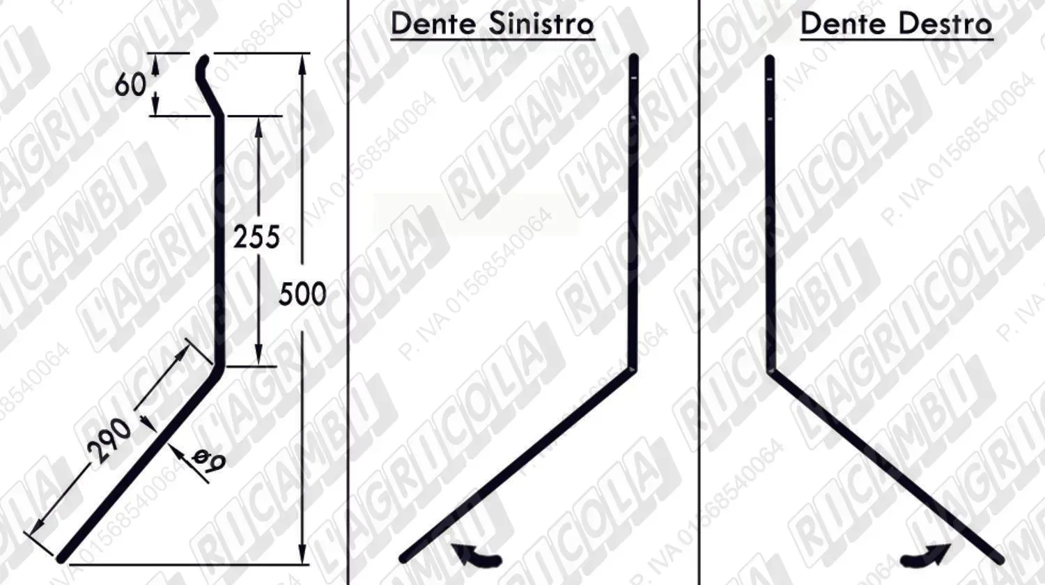 DENTE LATERALE SINISTRO PIEGATO ø9