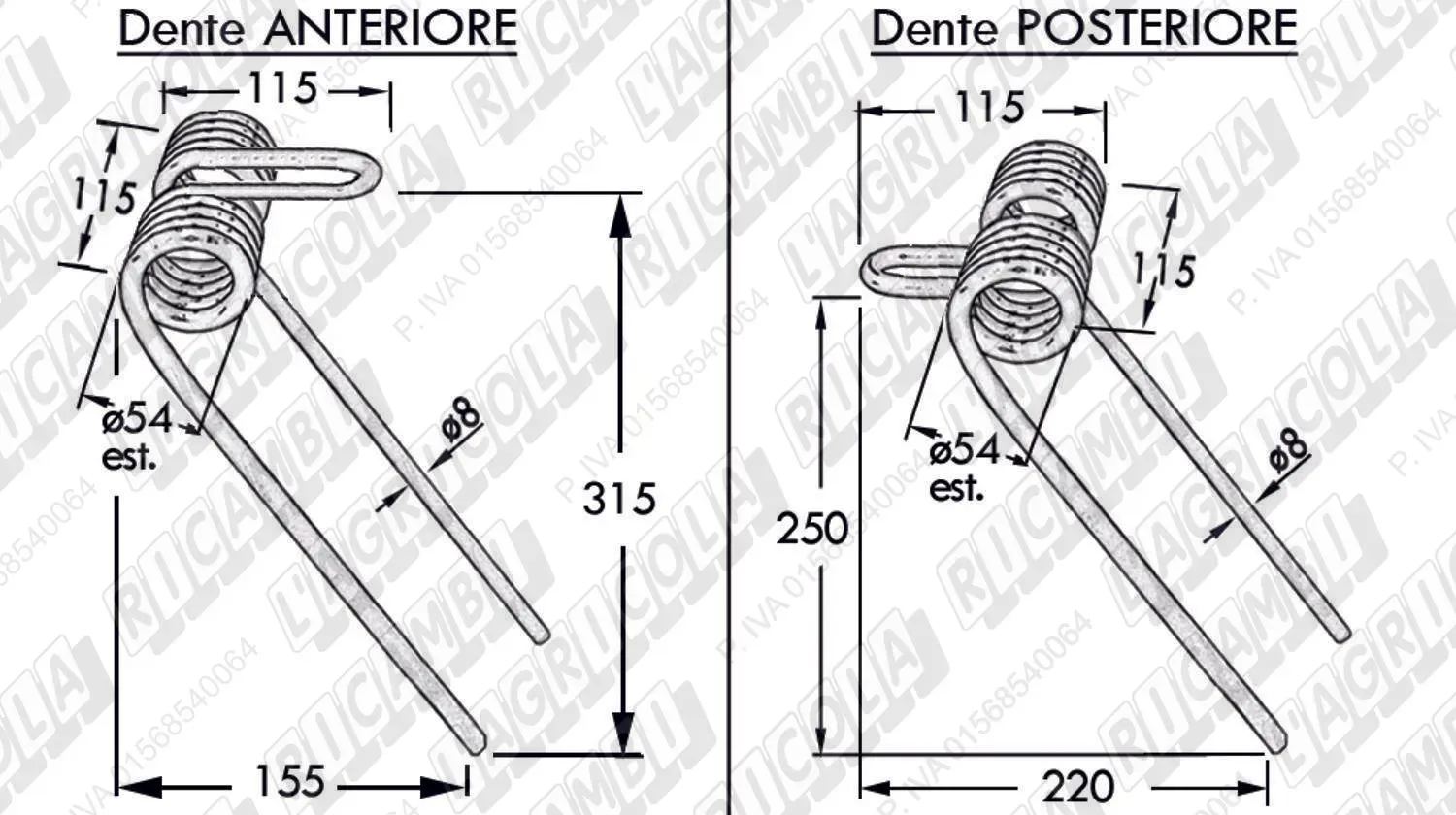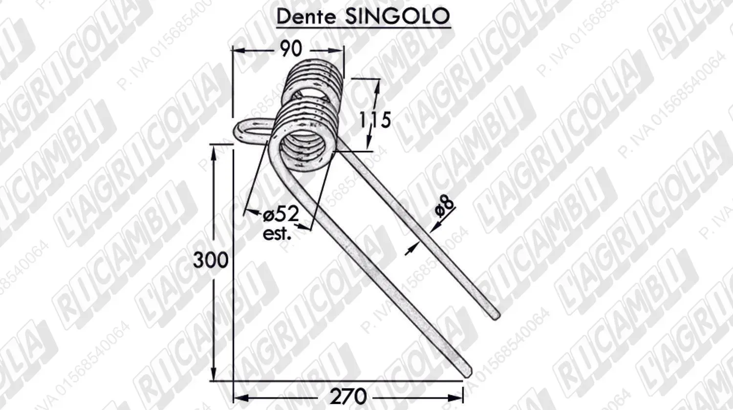 DENTE SINGOLO PIEGATO ø8