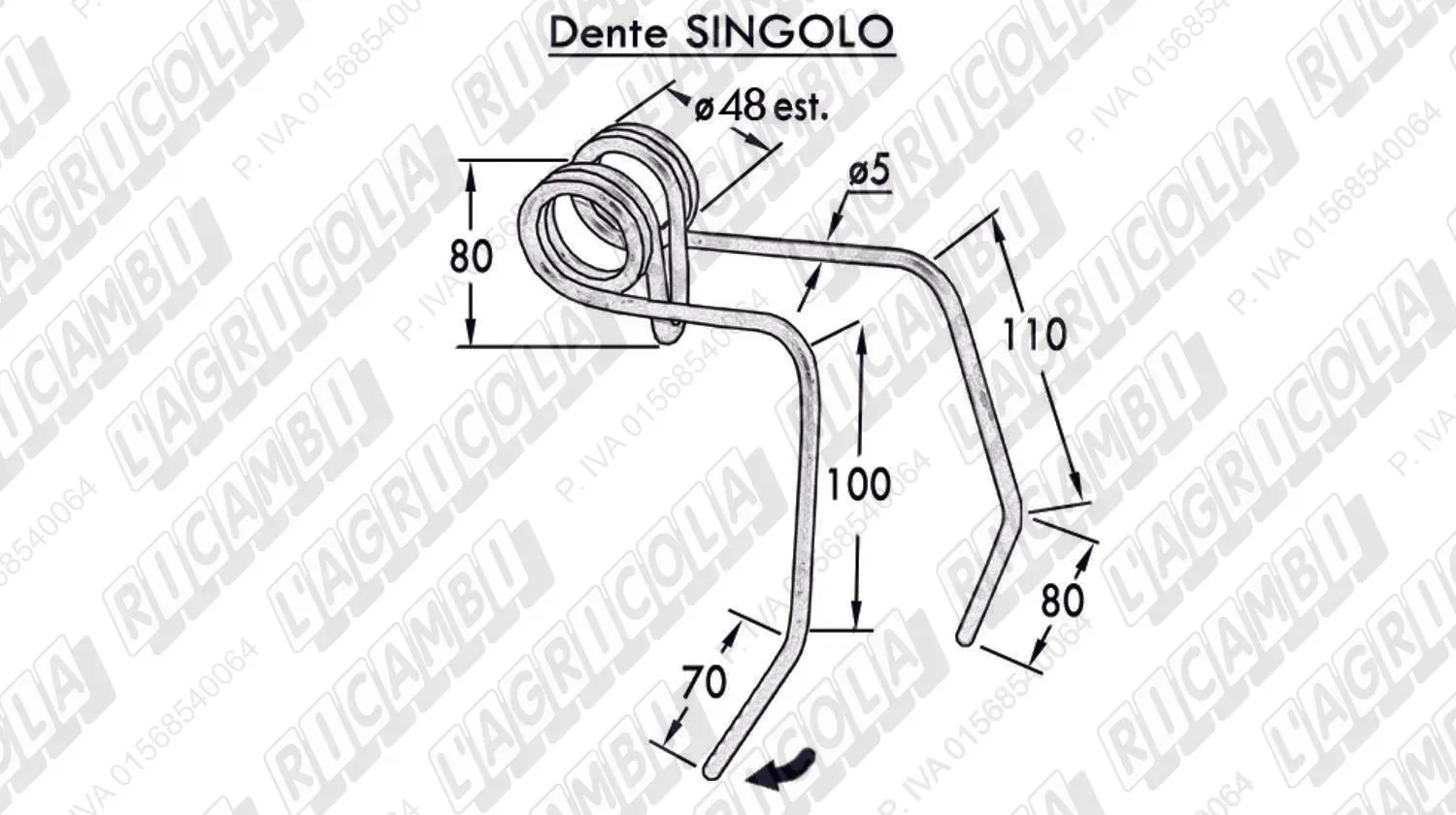 DENTE SINGOLO PIEGATO ø5