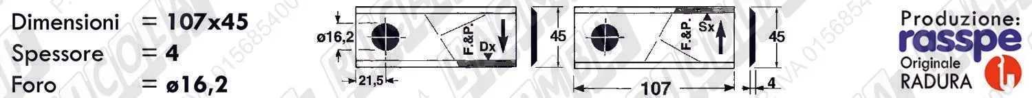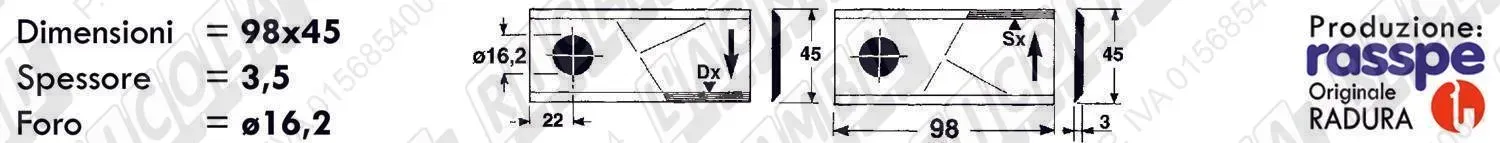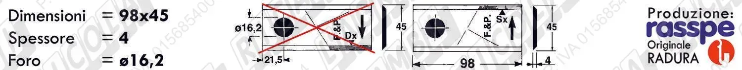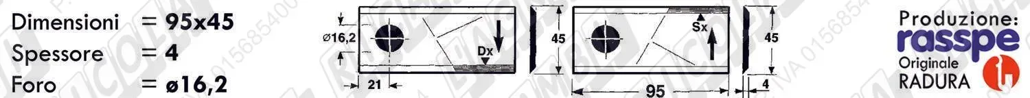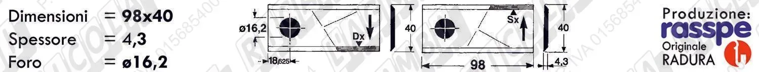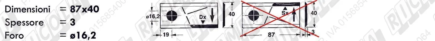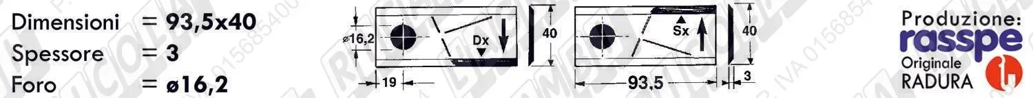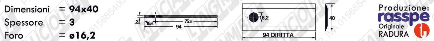 COLTELLO-LAMINO Diritto - 94 x 40 Sp.3 - Foro ø16,2 (dettagli) | |||