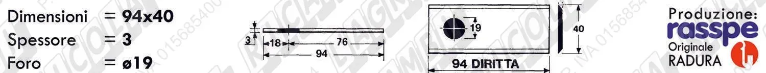 COLTELLO-LAMINO Diritto - 94 x 40 Sp.3 - Foro ø19,0 (dettagli) |