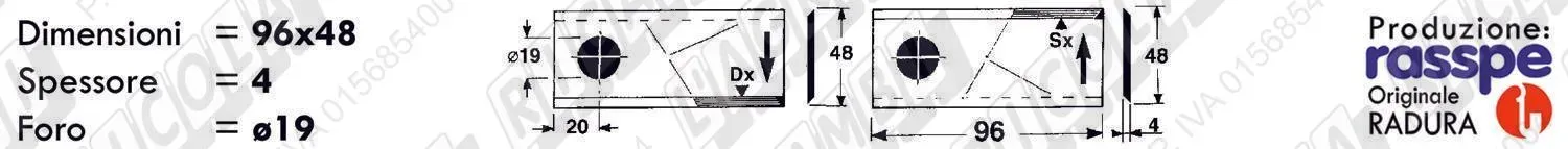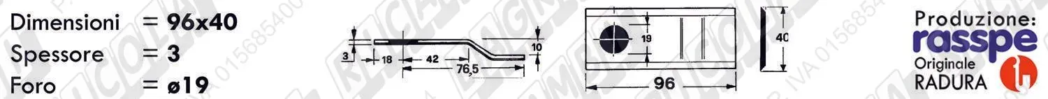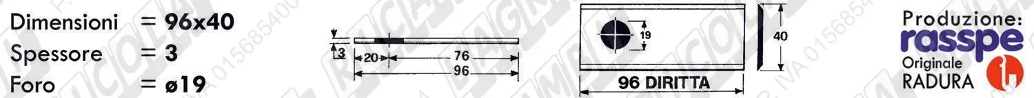 COLTELLO-LAMINO Diritto - 96 x 40 Sp.3 - Foro ø19,0 (dettagli) | |||