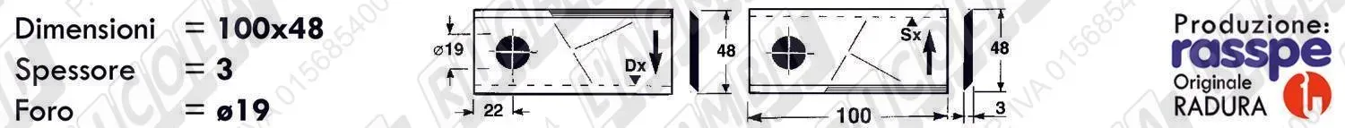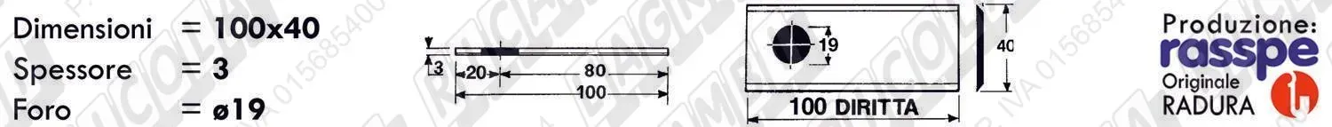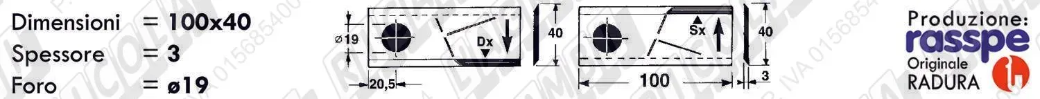 COLTELLO-LAMINO Diritto - 100 x 40 Sp.3 - Foro ø19,0 (dettagli) | |||