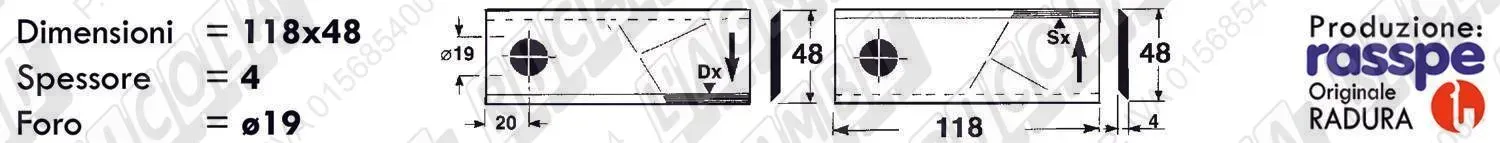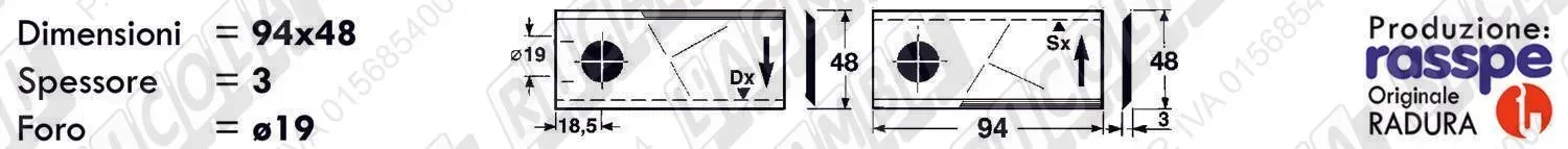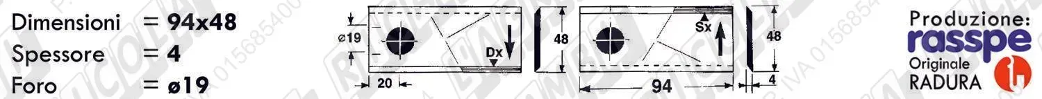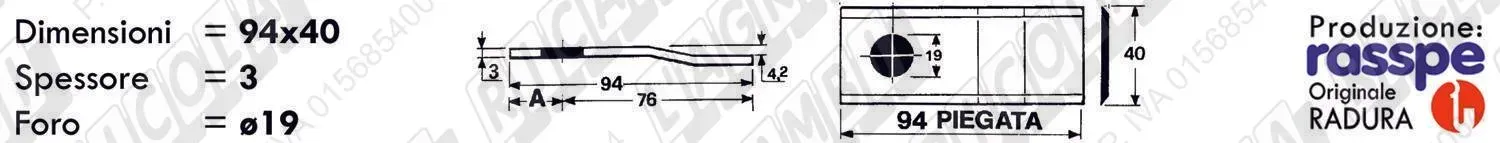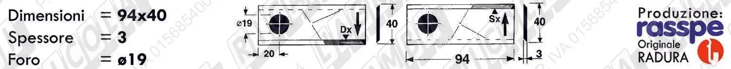 COLTELLO-LAMINO Ribassato - 94 x 40 Sp.3 - Foro ø19,0 (dettagli) | |||