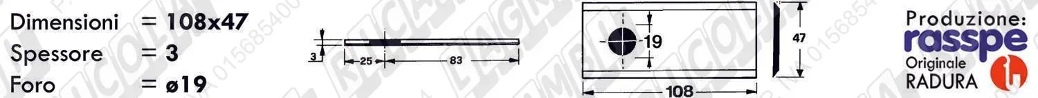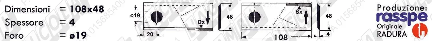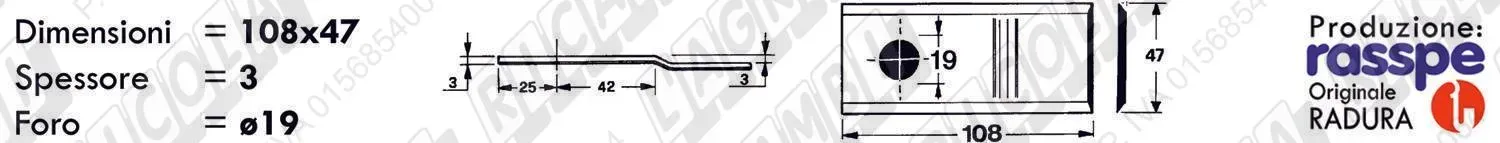 COLTELLO-LAMINO Diritto - 108 x 47 Sp.3 - Foro ø19,0 (dettagli) |