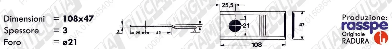 COLTELLO-LAMINO Ribassato - 108 x 47 Sp.3 - Foro ø21,0 (dettagli) | |||