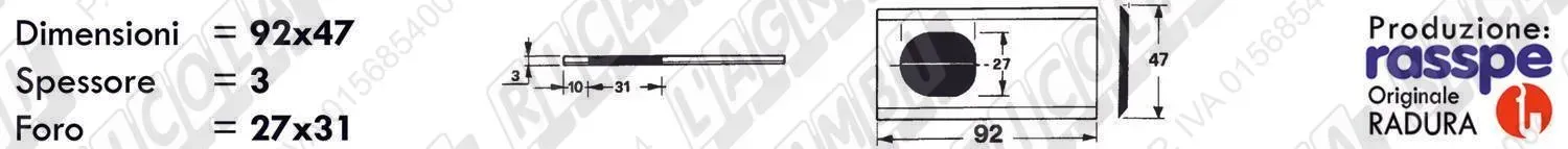 COLTELLO-LAMINO Diritto - 92 x 47 Sp.3 - Foro 27x31 (dettagli) |