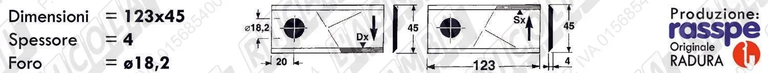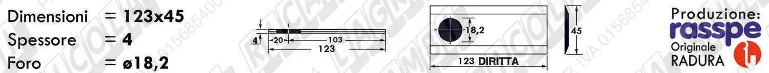 COLTELLO-LAMINO Diritto - 123 x 45 Sp.4 - Foro 18,2 (dettagli) |