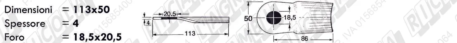 COLTELLO-LAMINO Bombato - 113 x 50 Sp.4 - Foro 20,5x18,5 (dettagli) |