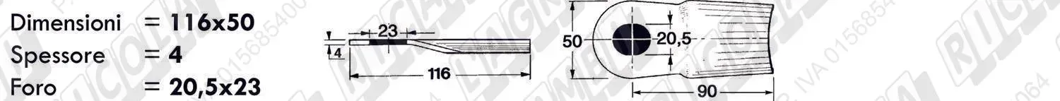 COLTELLO-LAMINO Bombato - 116 x 50 Sp.4 - Foro 23x20,5 (dettagli) | |||