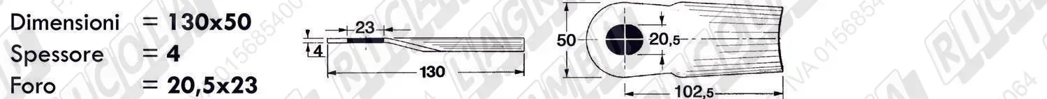 COLTELLO-LAMINO Bombato - 130 x 50 Sp.4 - Foro 23x20,5 (dettagli) |