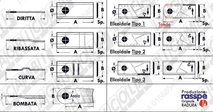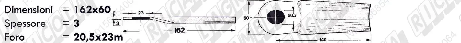 COLTELLO-LAMINO Bombato - 162 x 60 Sp.3 - Foro 23x20,5 (dettagli) | |||