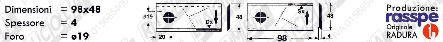 COLTELLO-LAMINO Ribassato - 98 x 40 Sp.3 - Foro ø19,0 (dettagli) | |||