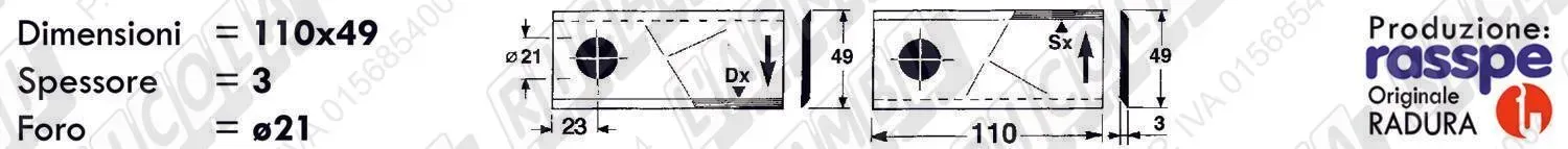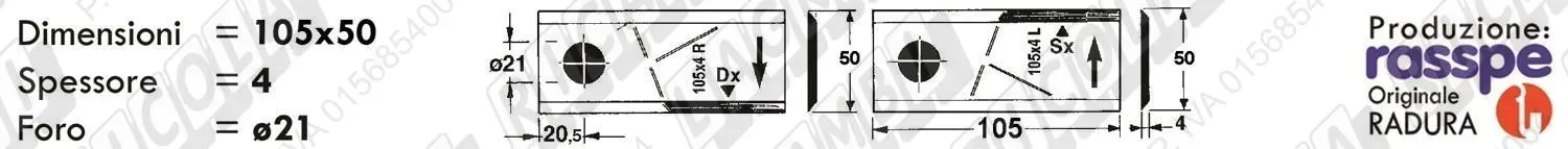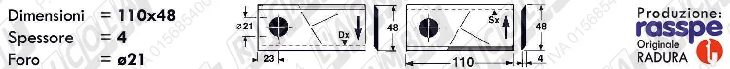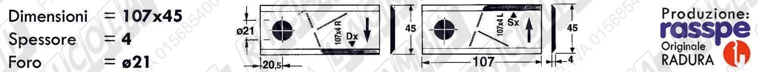 COLTELLO-LAMINO Diritto - 108 x 47 Sp.3 - Foro ø21,0 (dettagli) | |||