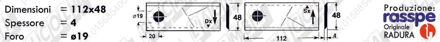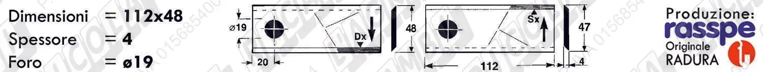 COLTELLO-LAMINO Elicoidale 1 - 112 x 48 Sp.4 - Foro ø19,0 /SX (dettagli) | |||