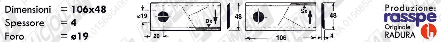 COLTELLO-LAMINO Elicoidale 1 - 106 x 48 Sp.4 - Foro ø19,0 /SX (dettagli) | |||