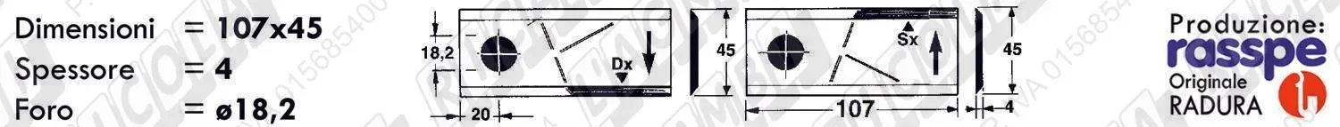 COLTELLO-LAMINO Elicoidale 3 - 107 x 45 Sp.4 - Foro ø16,2 /DX (dettagli) |
