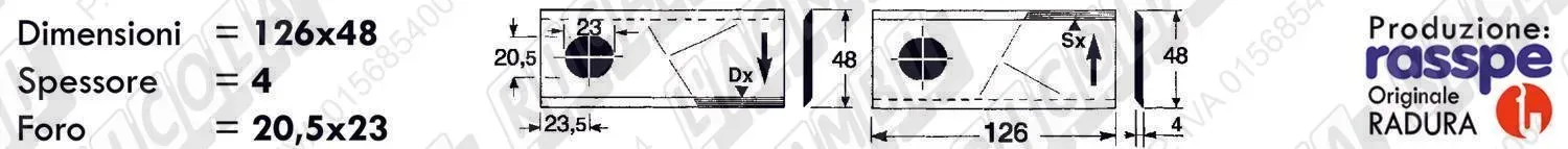 COLTELLO-LAMINO Elicoidale 1 - 126 x 48 Sp.4 - Foro 20,5x23 /SX (dettagli) | |||