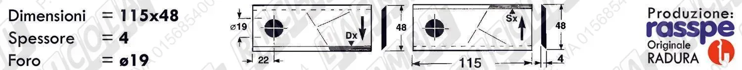 COLTELLO-LAMINO Elicoidale 1 - 115 x 48 Sp.4 - Foro ø19,0 /SX (dettagli) | |||