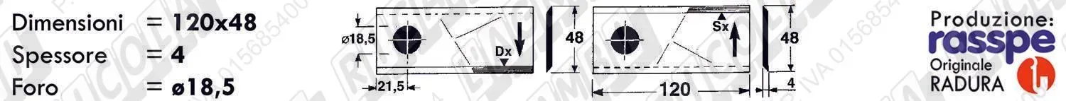 COLTELLO-LAMINO Elicoidale 1 - 120 x 48 Sp.4 - Foro ø18,5 /SX (dettagli) | |||