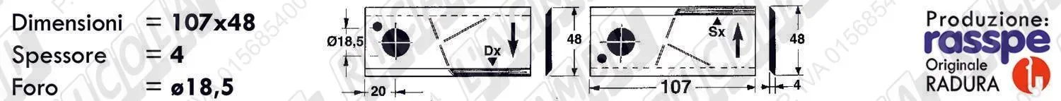 COLTELLO-LAMINO Elicoidale 1 - 107 x 48 Sp.4 - Foro ø18,5 /DX (dettagli) |