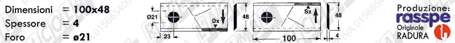 COLTELLO-LAMINO Elicoidale 1 - 100 x 48 Sp.4 - Foro ø21 /SX (dettagli) | |||