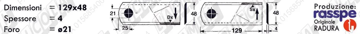 COLTELLO-LAMINO Elicoidale 1 - 129 x 48 Sp.4 - Foro ø21 /SX Tondo (dettagli) | |||