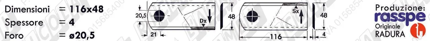 COLTELLO-LAMINO Elicoidale 1 - 116 x 48 Sp.4 - Foro ø20,5 /SX Tondo (dettagli) | |||