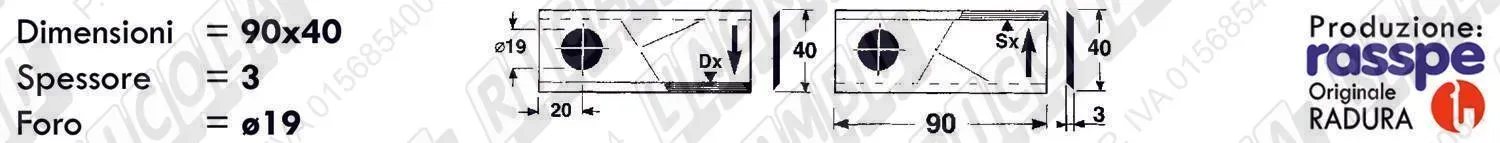 COLTELLO-LAMINO Diritto - 90 x 40 Sp.3 - Foro ø19,0 (dettagli) | |||