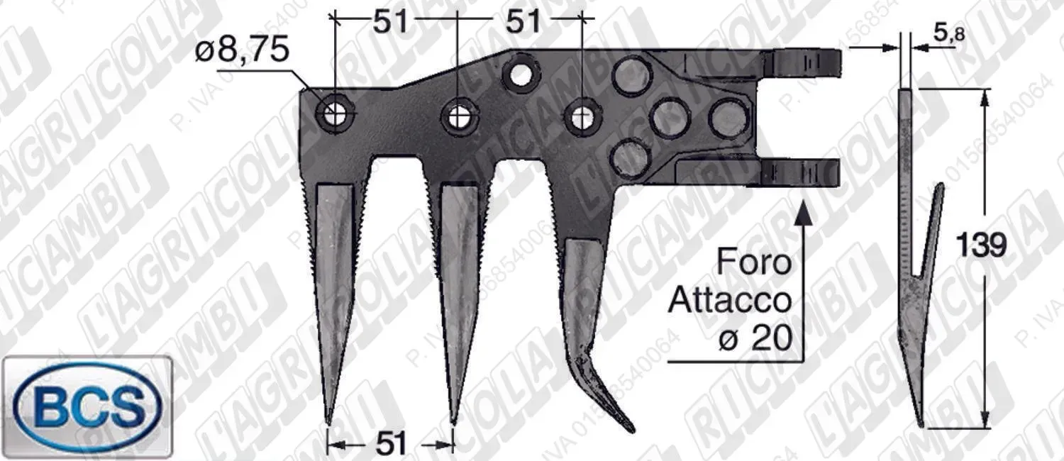 con DENTE TRIPLO SEMIFITTO
